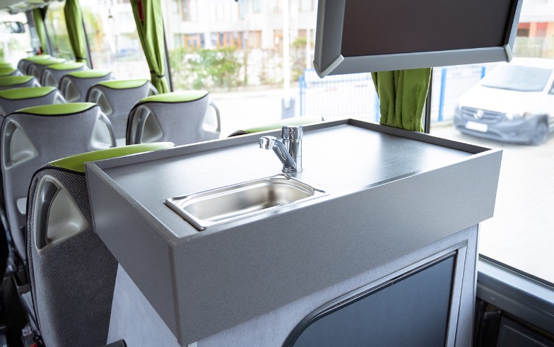 Interior autocar Mercedes Tourismo CFL cu 58+1 locuri, scaune ergonomice și dotări premium